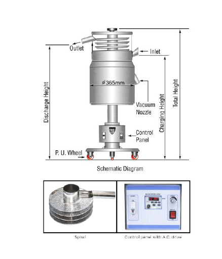 - Discharge chute can be rotated to suit Tablet Press outlet